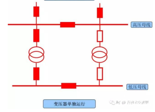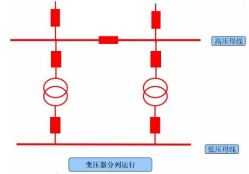 2.分列運行:兩臺變壓器高壓側母線并列(或分開)運行,低壓側母線聯(lián)絡斷路器分開運行。
